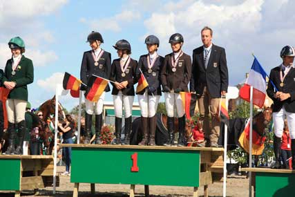 Dabei erreichte das rheinische Pony-Team einen hervorragenden dritten Platz in der Mannschaftswertung hinter den Teams aus Schleswig-Holstein und Westfalen. Landestrainerin Margret Neukäter ging mit den folgenden Paaren an den Start: Maleen Emig mit Very Important Paul, die in der Einzelwertung den sensationellen zweiten Platz belegte, Anais Neumann mit FST Schoensgreen Kaiserlicht, die in der Einzelwertung hervorragende Fünfte wurde. Gretha S. Völke mit Remember S und Amelie Colsmann auf Derby den Tip , Beide vom RV Seydlitz Kamp, belegten Punktgleich den 25. Platz und trugen somit zum Gesamtergebnis des Rheinlandes bei. Komplementiert wurde die Mannschaft von Frauke Rockhoff mit Dina S.