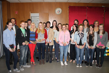 Diese erhielten 24 Reiter und Reiterinnen, die in der vergangenen Saison durch besondere reiterliche Leistungen hervortraten. Die durchgeführten Vorstandswahlen ergaben, dass Herr Andre Kolmann (1. Vorsitzender) und Andrea Schmitz (Rendantin) dem Vorstand in ihren Funktionen erhalten bleiben. Sie wurden von den Delegierten in ihren Ämtern bestätigt und einstimmig wiedergewählt. Weiterhin stand das Amt der Aktivensprecherin, bisher von Frau Anna Skoeries lange Jahre hervorragend und verantwortungsbewusst bekleidet, zur Wahl. Für diesen Posten wurde Frau Luisa Klötter vorgeschlagen und einstimmig gewählt. Unsere langjährige Pressewartin, Frau Alkje Zielonka, kann aus familiären Gründen die Pressebetreuung des Verbandes nicht weiter ausführen. Herr Rüdiger Beckmann ist neuer Pressewart und Ansprechpartner für pressetechnische Belange für unseren Verband.