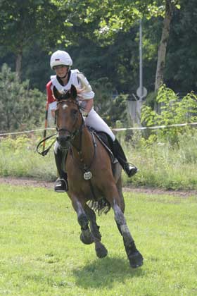 Nach der Dressur am Freitag war Jana noch sehr gedrückt,alles lief so gut auf dem Abreiteplatz,Lardina war locker ,die erfragten Lektionen klappten tadellos. Was dann im Viereck los war weiss Jana selbst nicht so genau ,Ihr Pferd war abgelenkt und die Lektionen klappten nicht mehr so genau wie man es von der erfahren Stute gewohnt ist. Etwas enttäuscht schrieb Jana nur,daß Ihre und Lardina's Stärken ja noch kommen würden. Samstag war Geländetag und Jana konnte auf Ihre Stute zählen.