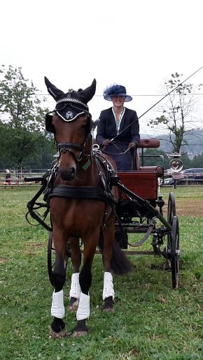 Dramatisch knappe Entscheidung in Reichshof-Eiershagen Am vergangenen Wochenende fand im bergischen Reichshof-Eiershagen die Meisterschaften der Fahrsportler aus dem Rheinland statt. Wieder am Start bei den Pony-Einspännern war die erst 18jährige Wendy Mickler vom Reiterverein Voerde mit ihrem Deutschen Reitpony Desert Moon.Mickler, die bereits im letztem Jahr Vizemeisterin bei den jungen Kutschenfahrern unter 25 Jahren wurde und auch für den rheinischen Jugendkader fährt, hatte sich sehr gut auf das M-Turnier mit Dressur, Hindernisfahren und Gelände-Marathon vorbereitet. Schon vor zwei Wochen konnte sie sich im hessischen Dillenburg über ihre erste M-Platzierung in einer Geländeprüfung freuen. Doch nun ging es gegen die anderen Fahrsportler aus dem Rheinland um die Titel. Bereits in der Dressur am Freitag konnte Mickler mit ihrem 8jährigen Wallach punkten. Besonders gute Noten erhielt sie dabei von den Richtern in den Tempowechseln im Trab. Der verdiente Lohn mit nur 3 Punkten Abstand auf die Erstplazierte war die silberne Schleife. Weiter spannend ging es am nächsten Tag im Gelände zu. Hier erhielt Mickler mit ihrem Gespann zwar keine Bestzeit in den 5 Hindernissen, aber sie konnte auf der Wegestrecke punkten und überzeugte durch eine konstant sehr gute Leistung in den einzelnen Durchfahrten. Diese tolle Leistung brachte ihr den Sieg in dieser Prüfung. Nach diesen beiden großartigen Platzierungen lag Mickler in der kombinierten Zwischenwertung knapp mit 1.56 Punkten vorne. Die Entscheidung musste am Sonntag das Fahren durch die 16 Kegelhindernisse bringen. Micklers stärkste Konkurrentin um die Gesamtwertung leistet sich einen Abwurf, das bedeuteten 3 Strafpunkte. Leider kam es für die junge Kutschenfahrerin vom RV Voerde auch zu einem Abwurf. Dazu kamen wenige Strafpunkte wegen einer geringfügigen Zeitüberschreitung. Mickler kam im Hindernisfahren auf den 6. Platz. In der Gesamtwertung blieb sie aber weit vorne: Sie verpasste die Meisterschaft nur knapp um 0,3 Punkte. So richtig gerechnet hatte sie mit diesem Erfolg nicht: "Das ist alles Wahnsinn", freute sie sich.