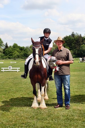 [ v.l.n.r.Uwe Horn, Richter Peter Mannheims, Siegerin Maxime Int Veen mit Timberland vom RuFV Rheurdt]